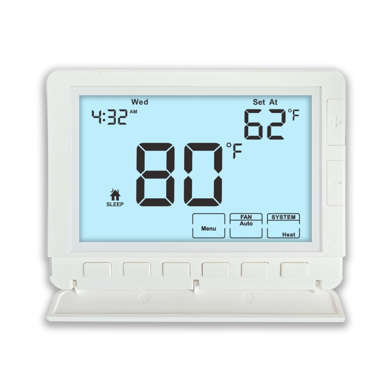 Termostat może pochwalić się imponującym rozmiarem wyświetlacza 8,18 cala kwadratowego, zapewniając przejrzysty i łatwy do odczytania interfejs. Ten duży wyświetlacz poprawia interakcję z użytkownikiem, ułatwiając przeglądanie aktualnych ustawień temperatury, trybów pracy systemu i szczegółów programowania na pierwszy rzut oka. Dobra widoczność jest szczególnie ważna w ustawieniach przemysłowych lub komercyjnych, na przykład podczas kontrolowania temperatury w jednostce klimatyzacji w serwerowni, gdzie precyzyjne monitorowanie ma kluczowe znaczenie dla bezpieczeństwa i wydajności sprzętu.